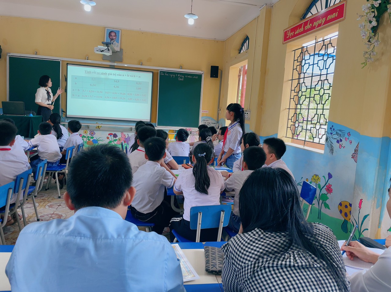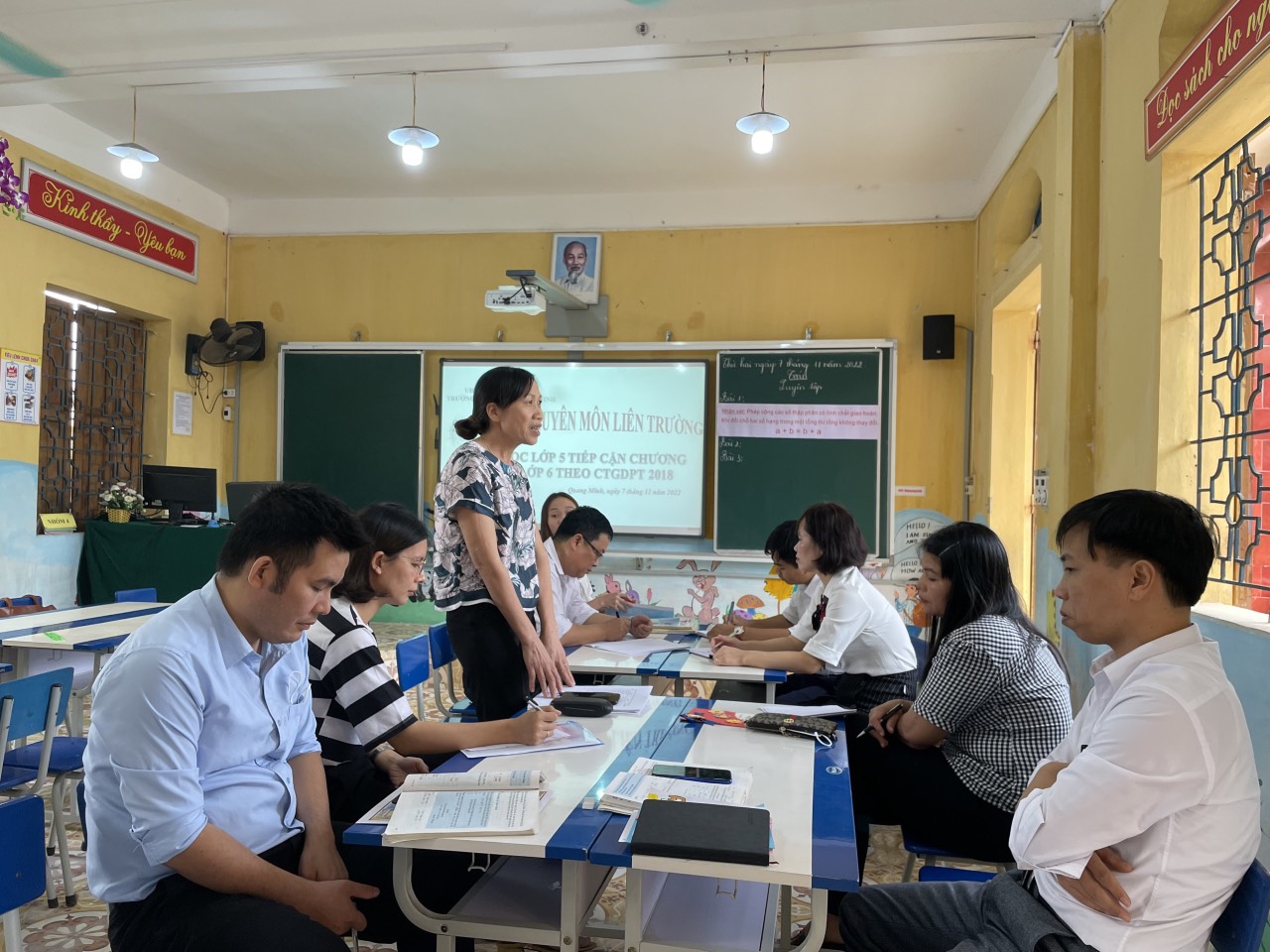 Thực hiện sự chỉ đạo của Phòng Giáo dục và Đào tạo và Kế hoạch năm học 2022 - 2023 của nhà trường, để giúp học sinh (HS) lớp 5 lên lớp 6 có hành trang vững chắc, bước chuyển tiếp nhịp nhàng giữa hai bậc học, chiều ngày 07/11/2022, tại trường TH Quang Minh, trường Tiểu học Quang Minh phối hợp với trường THCS Quang Minh tổ chức sinh hoạt chuyên môn liên trường nội dung dạy học lớp 5 theo hướng tiếp cận CT lớp 6 theo GDPT 2018. Dự sinh hoạt chuyên môn có sự tham gia của BGH hai nhà trường, giáo viên dạy khối 5 của trường TH Quang Minh và GV dạy môn Toán, môn Ngữ Văn khối 6 năm học 2022 - 2023 của trường THCS Quang Minh. Tại buổi sinh hoạt nội dung chuyên đề, các thầy cô hai nhà trường đã dự giờ 1 tiết gồm Toán lớp 5 do cô giao Phạm Thị Minh - GVCN lớp 5A trường TH Quang Minh thực hiện.